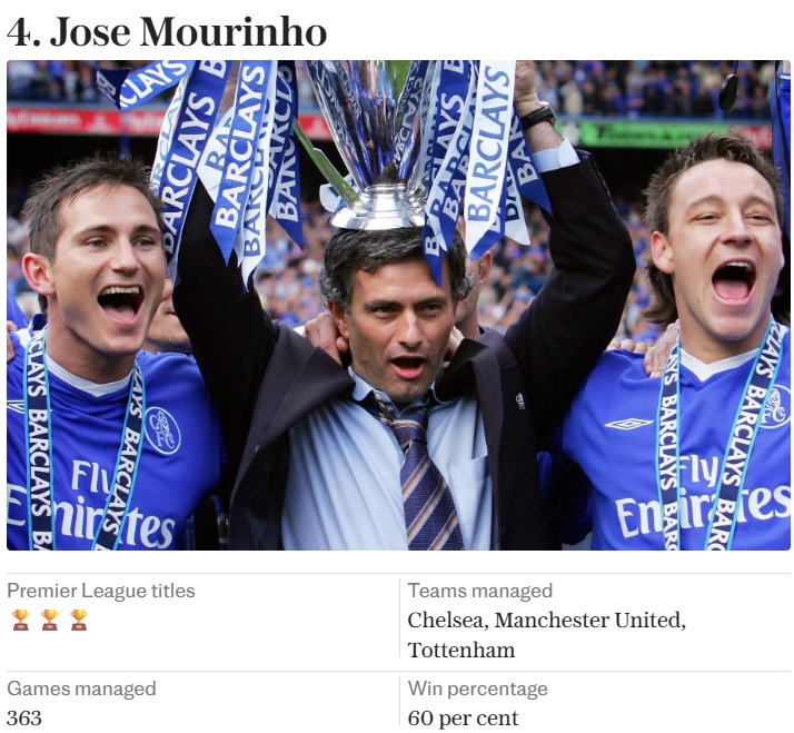 4.穆里尼奥(切尔西、曼联、热刺)