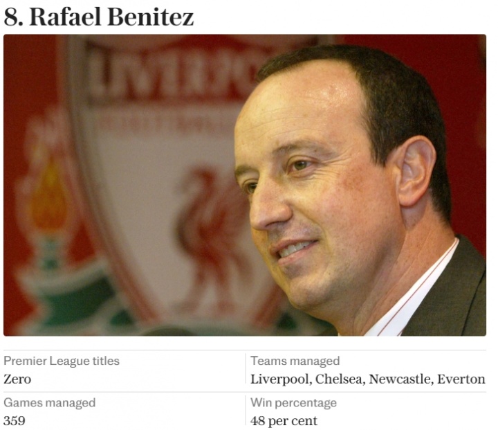 8.贝尼特斯(利物浦、切尔西、纽卡、埃弗顿)