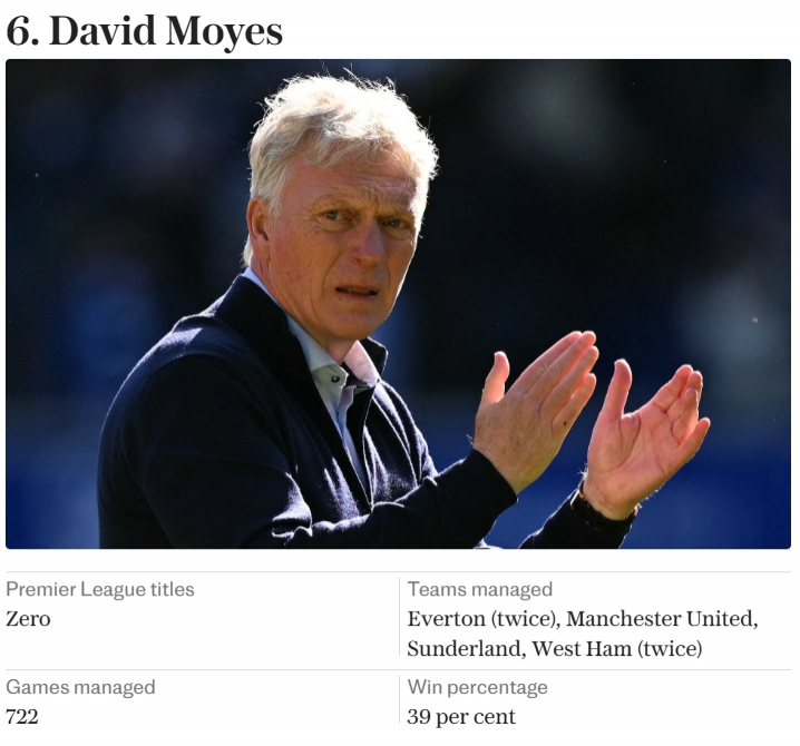 6.莫耶斯(埃弗顿、曼联、桑德兰、西汉姆)