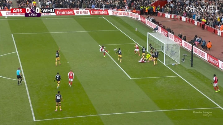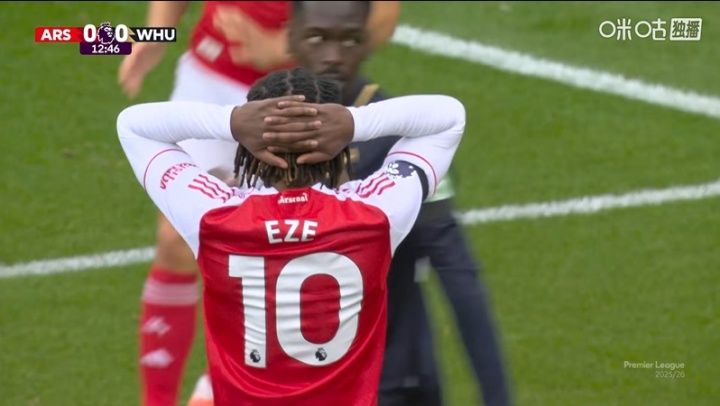 10月04日讯 英超第7轮,阿森纳vs西汉姆联。比赛第13分钟,埃泽面临半佛门凌空踢飞,枪手错失良机。