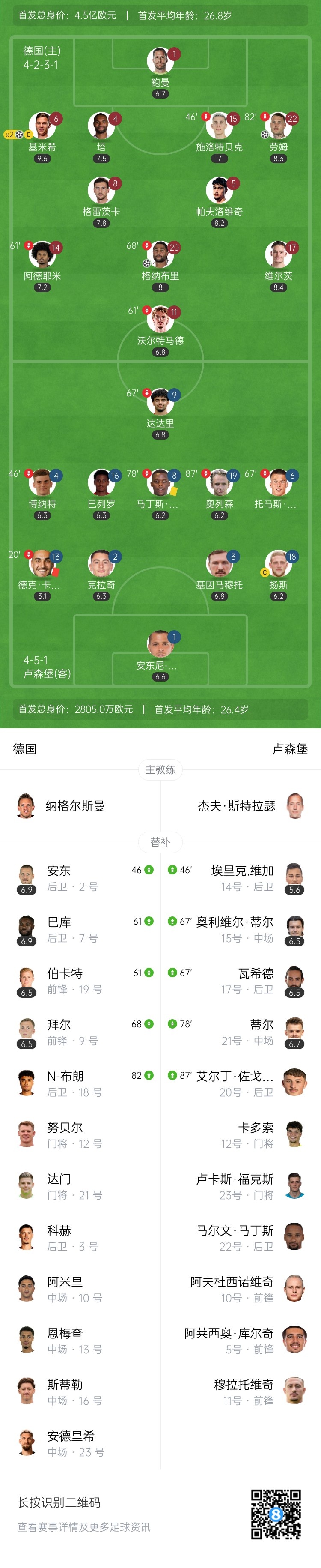 纳格尔斯曼上一次皆集两场使用磋议首发回要顾忌到一年前,即2024年原土欧洲杯的小组赛阶段。