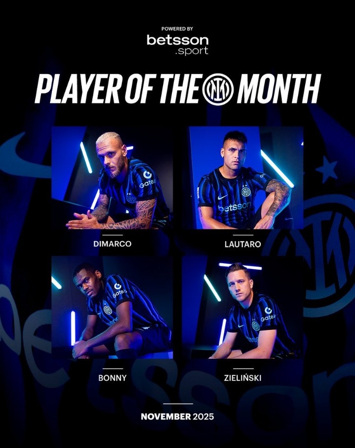 国米官方11月最好球员候选:劳塔罗、迪马尔科、博尼、泽林斯基