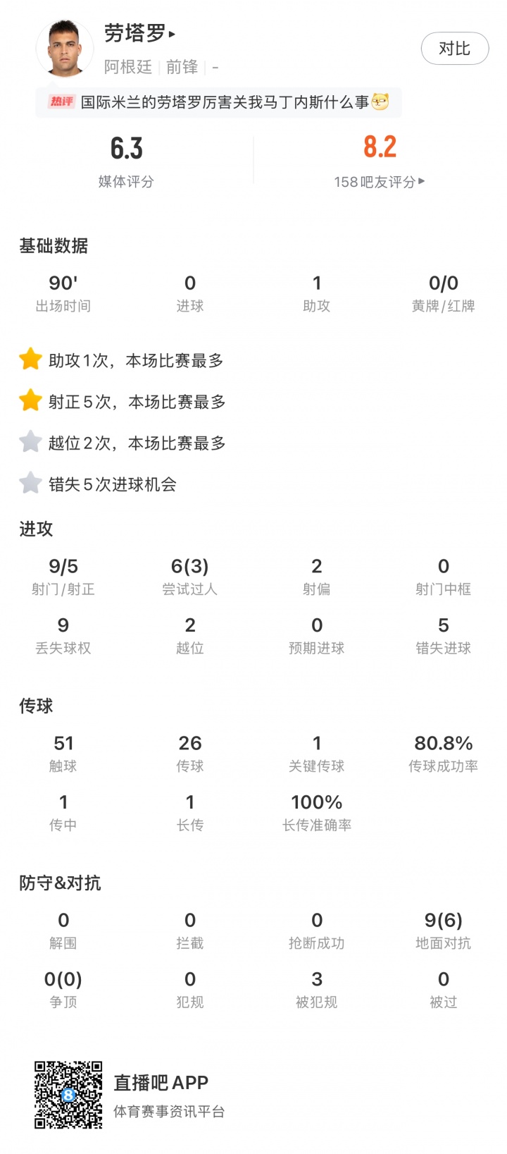 逆天了塔罗🤯劳塔罗打满全场0进球5次失良机!9射5正2次越位