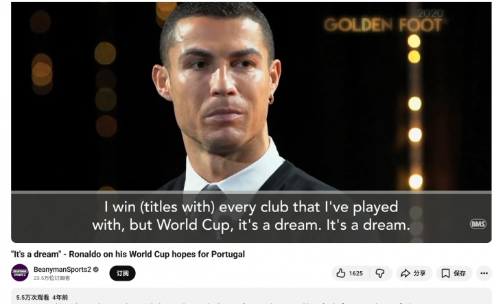 早在2020年12月31日,C罗摄取BeanymanSports采访默示:就像我说过的,我念念为葡萄牙赢得冠军锦标,之前咱们依然赢过两个了,但天下杯,那仍是我的梦念念。
