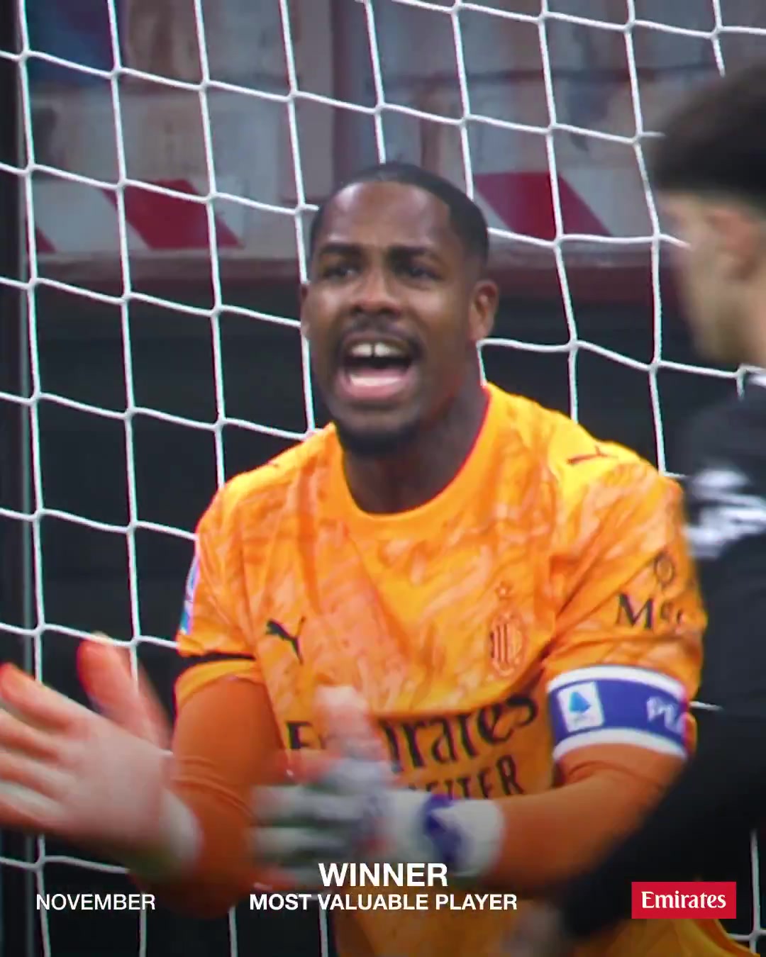 迈尼昂11月出战4场比赛,丢掉2球,完成3场零封,米兰官方秘书,过程球迷的投票,迈尼昂当选队内11月最好球员。