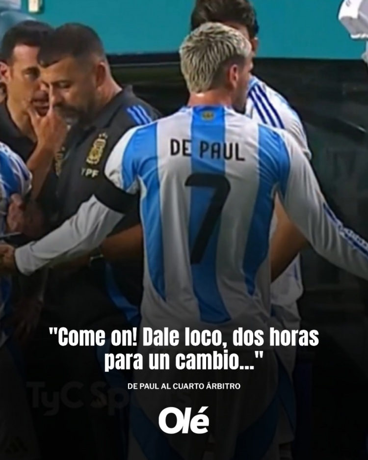 德保罗此役为阿根廷队替补出场,据《奥莱报》报谈,德保罗对第四官员怀恨换东谈主太慢,他说谈:“快点!哥们,换个东谈主要等俩小时。”
