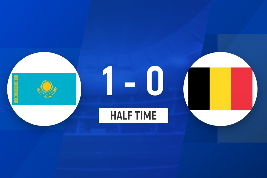 上半场比赛死心,哈萨克斯坦1-0比利时。