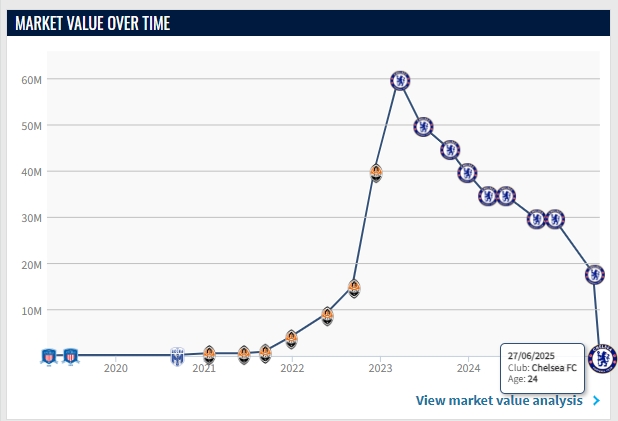 现年24岁的穆德里克,2023年以7000万欧元的转会费加盟切尔西,于今代表球队出战73场比赛,孝顺10球11助。在碰到长久停赛后,切尔西也将他的10号球衣给了帕尔默,德转也在6月末的更新中将穆德里克的身价暂时归零。