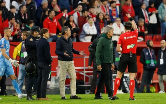 12月1日讯 据《马卡报》报说念,在贝蒂斯客场2-0打败塞维利亚的比赛中,有部分球迷向场内投掷水瓶,从而导致比赛一度中断。