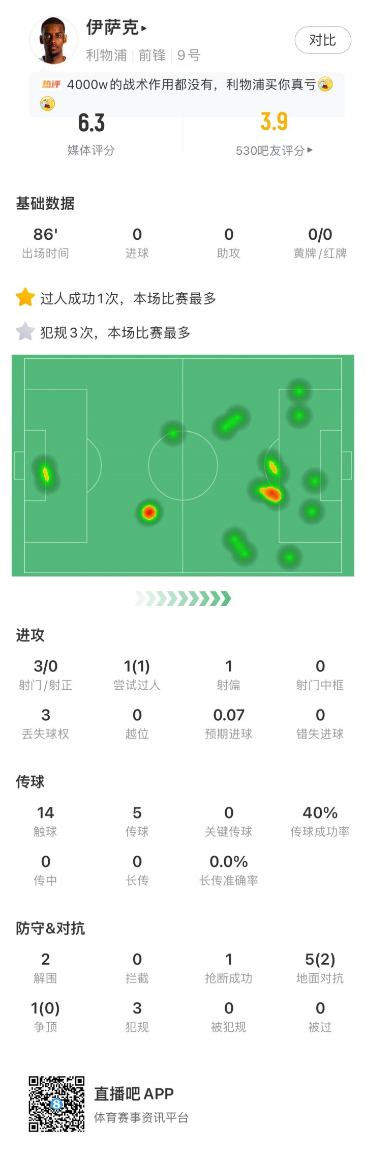 下半场伊萨克发达愈加不足为患,膂力不支后不成幸免地被换下。天然,伊萨克尽人皆知的体能问题是形成他现象欠安的部分原因,但他无法总共融入比赛节拍,究竟有几许是战略上的劣势?又有几许是他本人的原因呢?这是一个值得琢磨的问题。