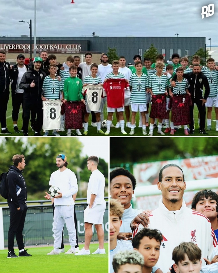 利物浦U15梯队打败费伦茨瓦罗斯U15梯队,晋级半决赛。赛后利物浦一线队球员与费伦茨瓦罗斯的小球员们合影,并施助球衣。