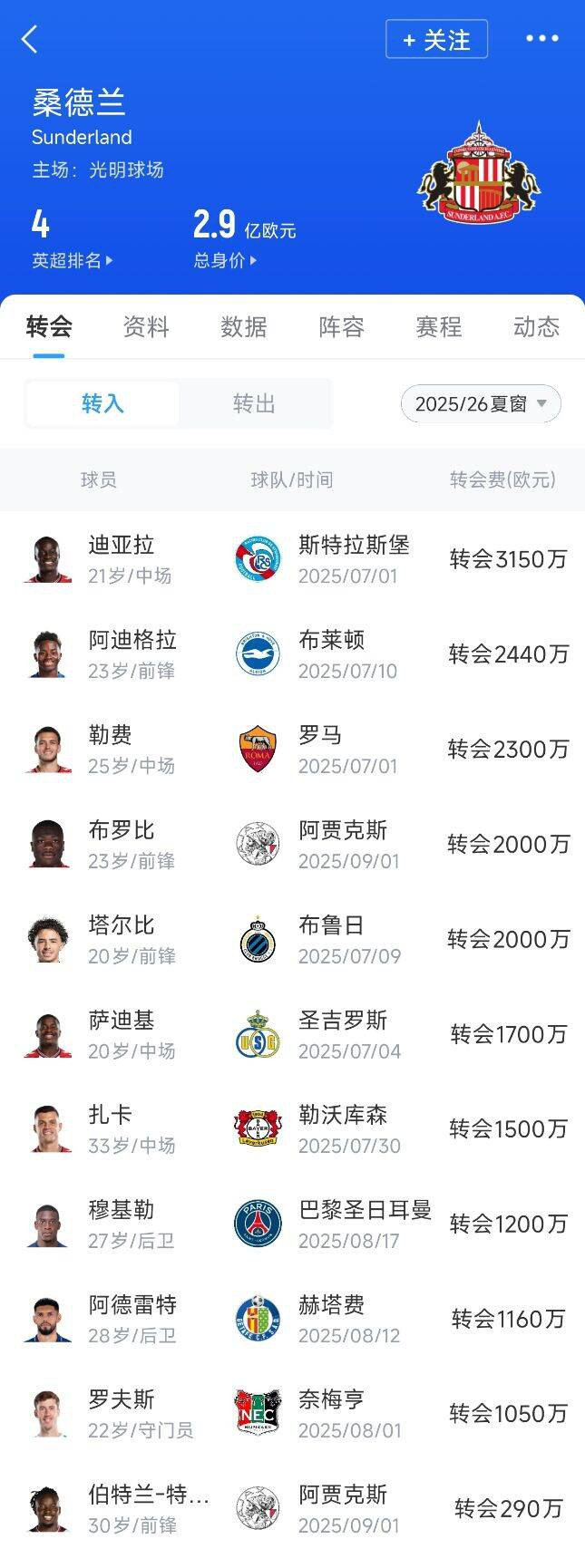 残酷升班猫! 桑德兰1.9亿豪购11东谈主险些换支队, 6轮仅1败升英超第4