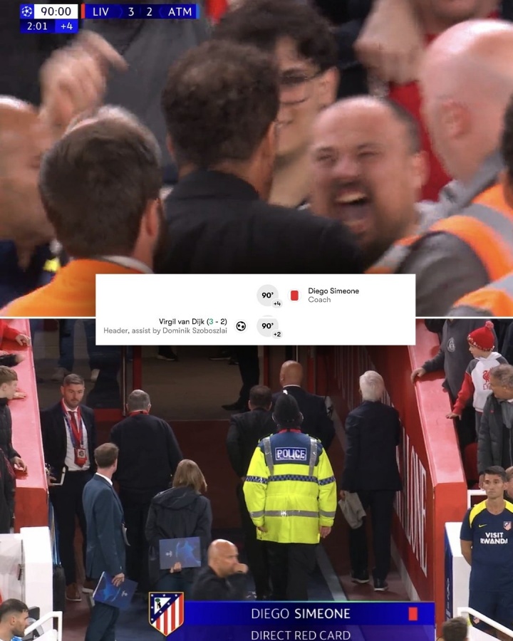 与赤军球迷对喷!官方:西蒙尼行径违背体育说念德,欧冠停赛1场