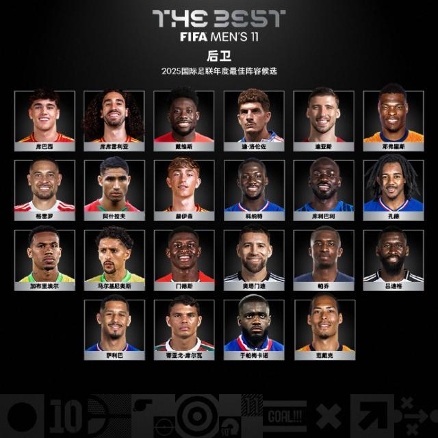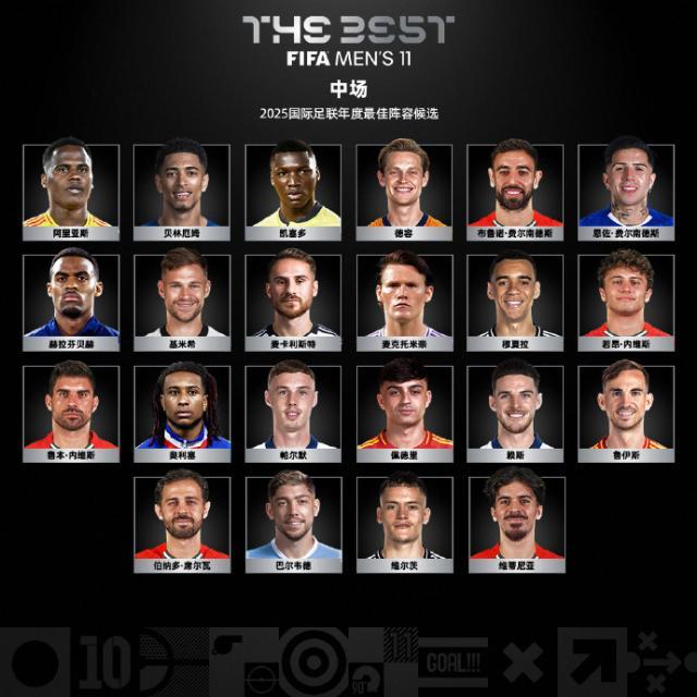 外洋足联(FIFA)公布2025年度各项集体及个东说念主大奖候选名单,名单由外洋足联过火他足球筹商机构代表构成的行家小组制定。其中男人最好球员(足球先生)11名候选、女子最好球员17名候选;男人最好门将8名候选、女子最好门将7名候选;男人最好讲明7名候选,女子最好讲明5名候选;男女子最好声势各个位置分辨22名候选。