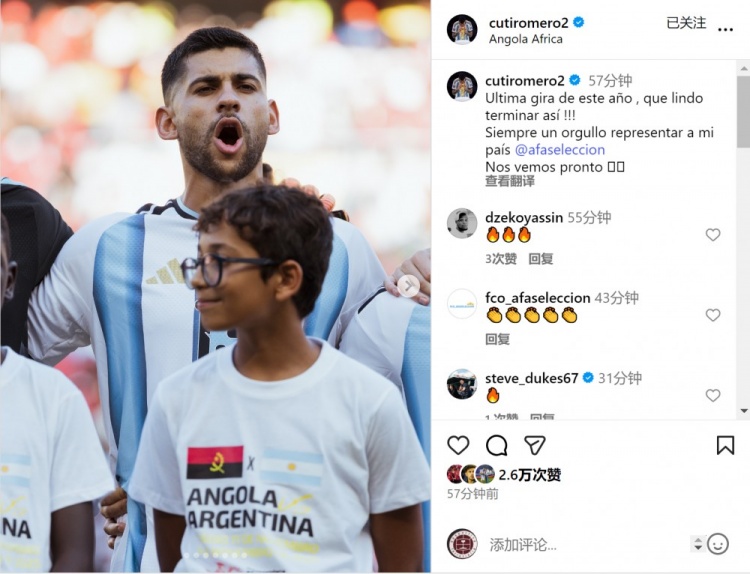 罗梅罗社媒:以成功领域一年的国度队征途太苦衷,很吹法螺为国出战