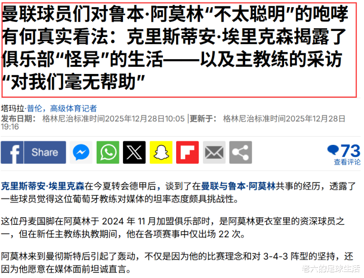 也曾转会离队的埃里克森在最近诠释注解他对球队的确切意见,他合计阿莫林许多公开的发言对球队不仅没灵验处还给了他们很大的压力,而对于阵型的改换,几个月前他还宣称即使是教皇也弗成改换他的轮番。
