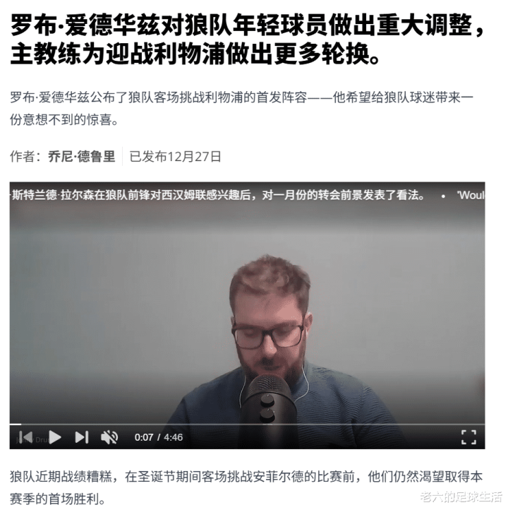 狼队这边新任的主矜重爱德华兹一直莫得消除对球队的鼎新,尽管他上任以来六场比赛一齐输掉,上场与利物浦的比赛爱德华兹勇猛的瓜代了球员,启用了u21的小将马内,球队最终2-1惜败利物浦。