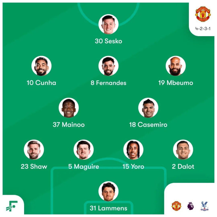 卡里克上任以来,球队在10场赛事 中取得了23分,是同期英超职业联赛 中最高的。他是怎么做到的?表面上看,这似乎很简单。卡里克效仿前任弗莱彻的做法,放弃了阿莫林坚守 的三后场球员阵形 ,将领队 布鲁诺·费尔南德斯送回更靠前的10号位,召回科比·梅诺与卡塞米罗搭档,并坚守 了基本固定的用人。